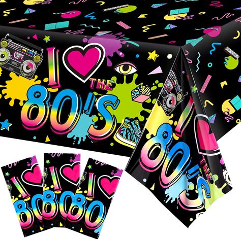 Tegeme 3 Pack 80S Plastic Party Tablecloth 80'S Party Table Cover 80S Birthday Supplies The 80'S Hip Hop Decoration Throwback Birthday Decoration For